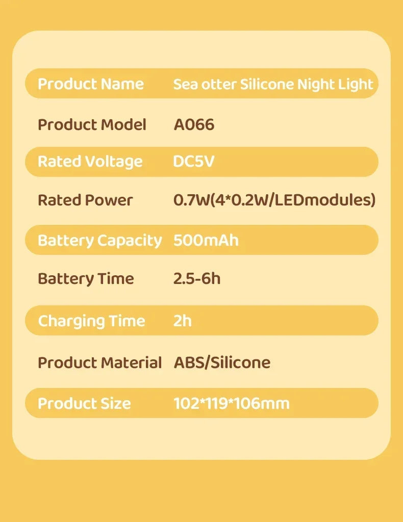 Cute Sea Otter Children's Night Light Rechargeable